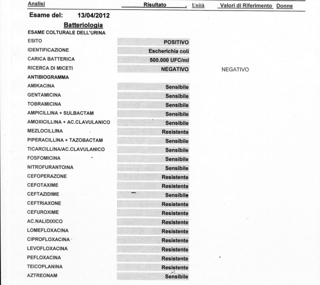 Ed ecco l'urinocoltura del 2 aprile..