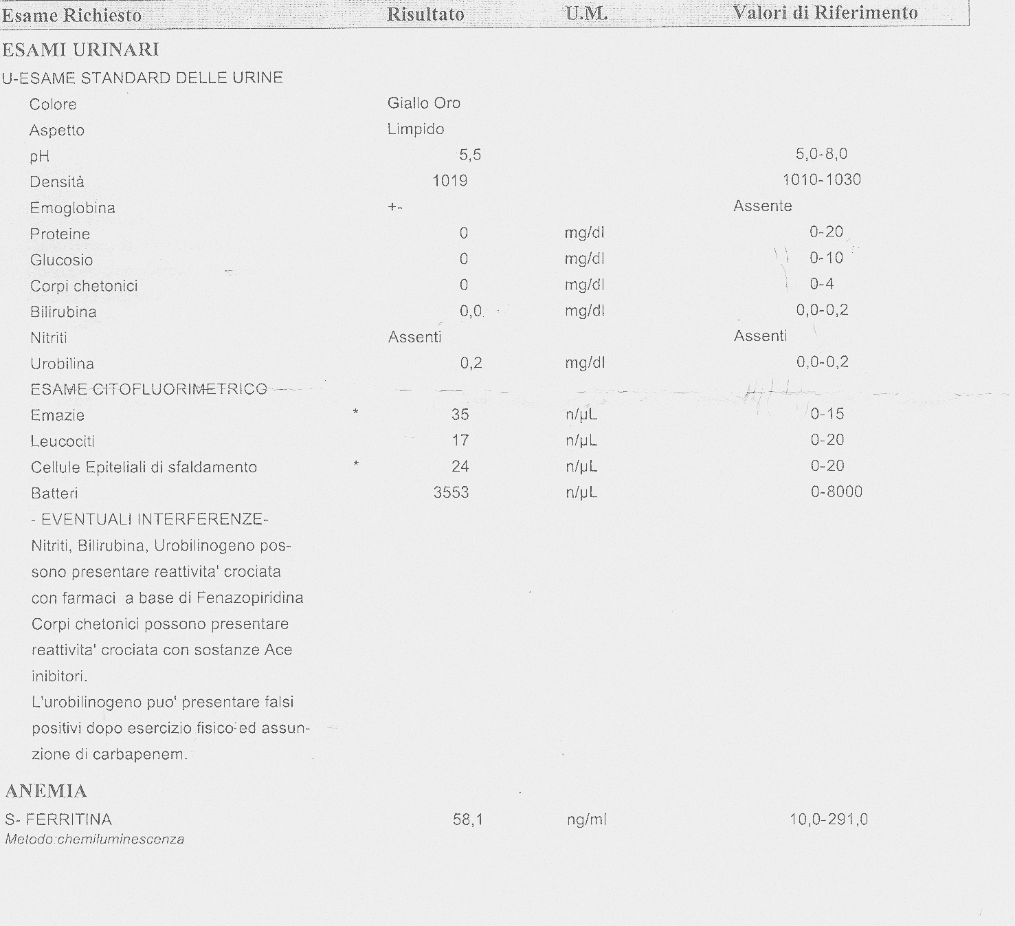 L'esame dell'urina l'ho fatto il 13/11 con questi risultati.